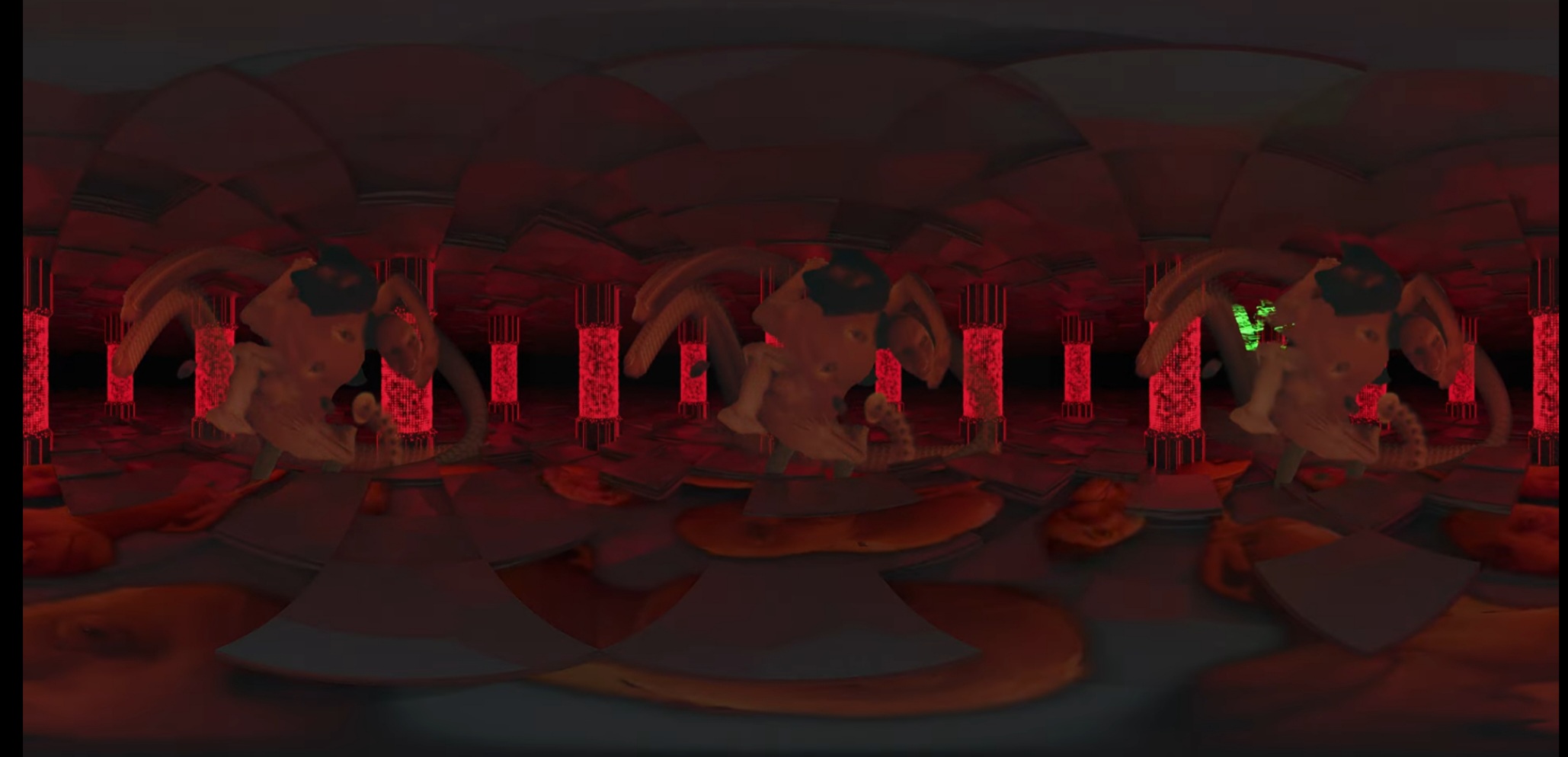 Das transformative Potenzial des Tanztheaters wird mit transformativen Horrorkonventionen verbunden. Ein weiblicher Körper wird in einem häuslichen Raum, in einem Badezimmer, unheimlich, indem er sich an Oberflächen und Gegenstände anpasst und eine Körpersprache verwendet, die häufig in Horrorfilmen zu finden ist, ohne dass er erschrecken will. Das Material der immersiven Technologien selbst hat unheimliche, jenseitige Qualitäten, mit offensichtlichen Nähten und "Glitches". Der Körper wiederum irrt und bewegt sich krampfhaft im Takt. Der Betrachter späht in den Raum, aus der Sicht eines Objekts oder eines Tieres, das in der Hocke sitzt, sich versteckt, klein wird und Teil des unheimlichen Ökosystems wird. Der Ton spielt auf das Klingeln der Ohren an, als ob er im Kamerakörper widerhallt und diesen bewohnt.